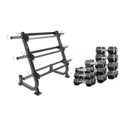 3-Tier Dumbbell Rack + 305kg Rubber Hex Dumbbells & Storage