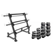 Rubber Hex Dumbbell Rack 3 Tier + Weight Plate & Barbell Storage + 565 Kg Rubber Dumbbells