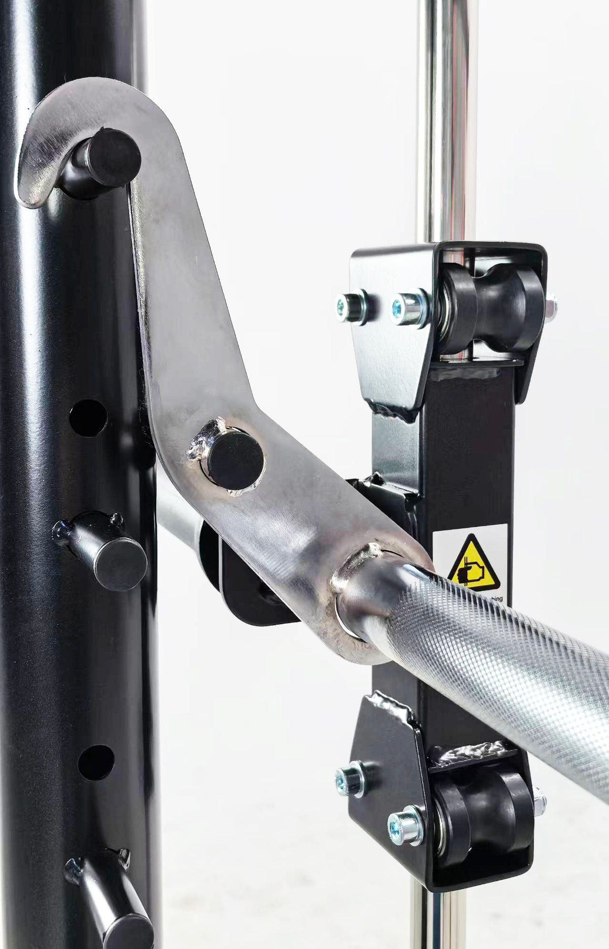Heavy-duty half smith system with 4-track rollers and linear bearings for smooth, controlled lifting