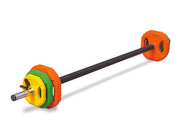 - Includes 2X5kg, 2X2.5kg, and 2x1.25kg weights colour coded weight plates