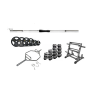 Olympic Lifting Combo: 90 Kg Plates + 20 Kg Barbell, 20 Kg Trap Bar, 220 Kg Dumbbells & Rack