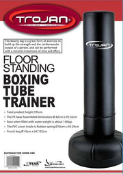 Trojan Free standing punch bag. Best design that rebounds perfectly with each hit. High density shock absorbing foam padding with polyurethane coated in the outer layer. Designed for punching and kicking. Vinyl base can be filled with either sand or water + - 130 to 140 Kg when filled. This bag base is round which allows for easy relocation.A removable foam collar is included for added protection.This punch bag/stand is excellent value for money and one of our most popular punching bag. Suitable for home use or small PT studio.