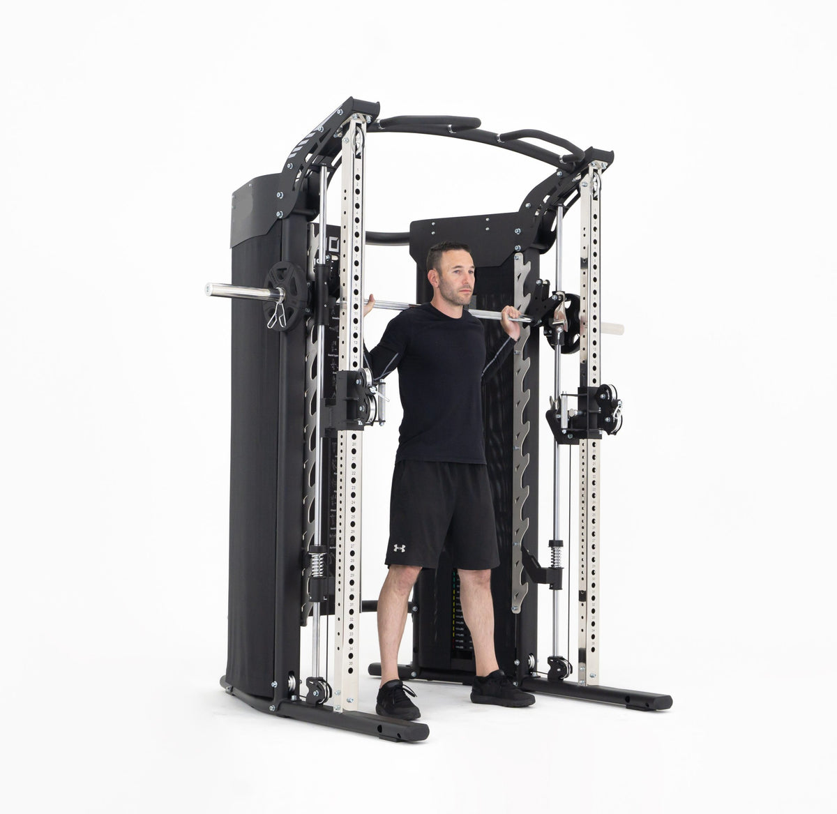 Introducing the revolutionary TRSMFT900 Functional Training Smith System, a pinnacle of innovation in home fitness equipment. Crafted with precision, this powerhouse marries cutting-edge engineering with adaptable design to redefine your workout experience.