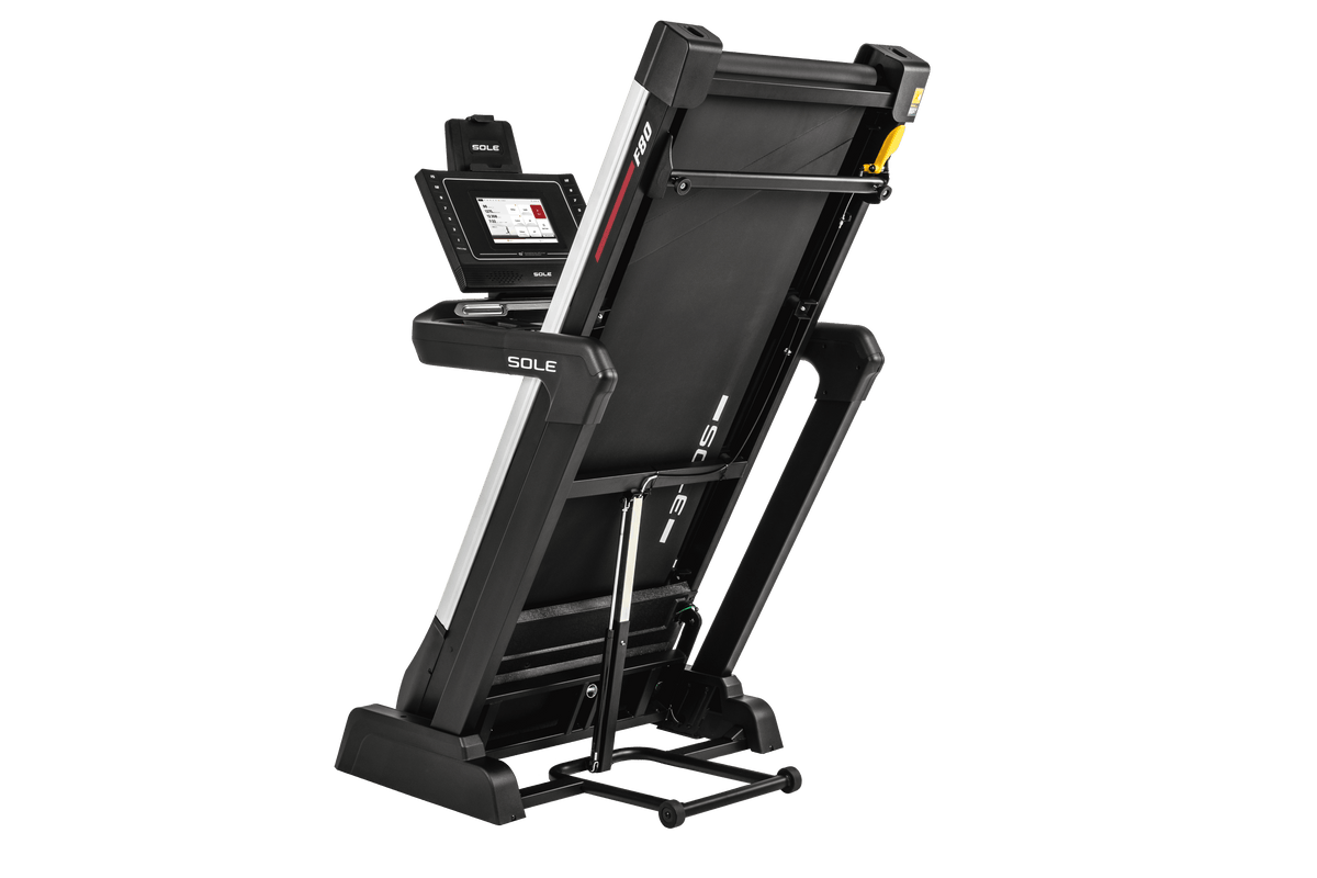 The strong, 3.5 HP motor delivers a challenge to any runner with speeds up to 20 kmph and inclines up to 15 levels. When not in use, the treadmill deck folds-up and locks into place for 100% security and peace of mind.SOLE’s folding treadmill frame design for the F80 originated from the demand hotels had for a treadmill that could be moved around as easily as a room service cart, yet still stable and powerful.