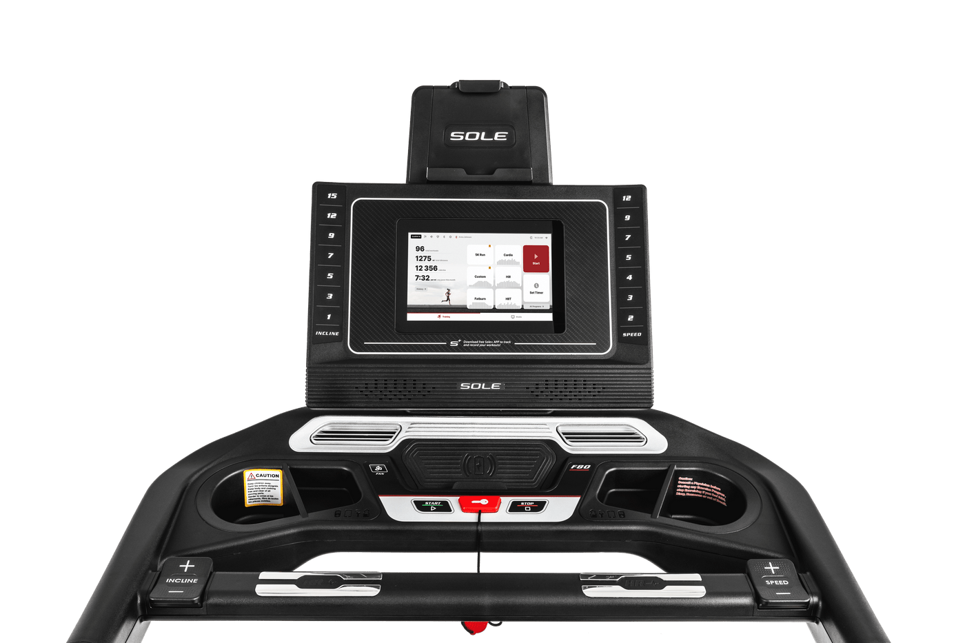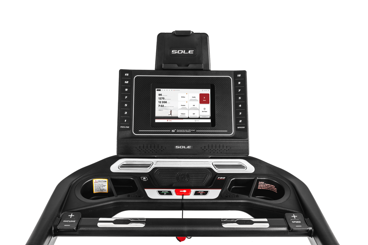 Start running with F80’s pre-programmed workouts: Manual, Hill, Fat Burn, Cardio, Strength, HIIT, 5K, 10K, Custom, HRC, and Fitness Test (Air Force/Army/Coast Guard/Gerkin/PEB/Marine Corps/Navy)The F80 features cooling fans, a tablet/phone holder, as well as speed and incline controls on the front crossbar. The treadmill console is very user-friendly showcasing the new 10.1″ touch screen display that allows you to save your user profile, track your progress, and save your user settings. It also has the ability to save multiple profiles for multiple users on the same machine. The console has built-in speakers with integrated Bluetooth and WiFi which allows you to play music from your personal media device.Screen Mirror your phone or tablet on the F80 screen to enjoy all the features of your device or use the built in apps to watch shows or news.